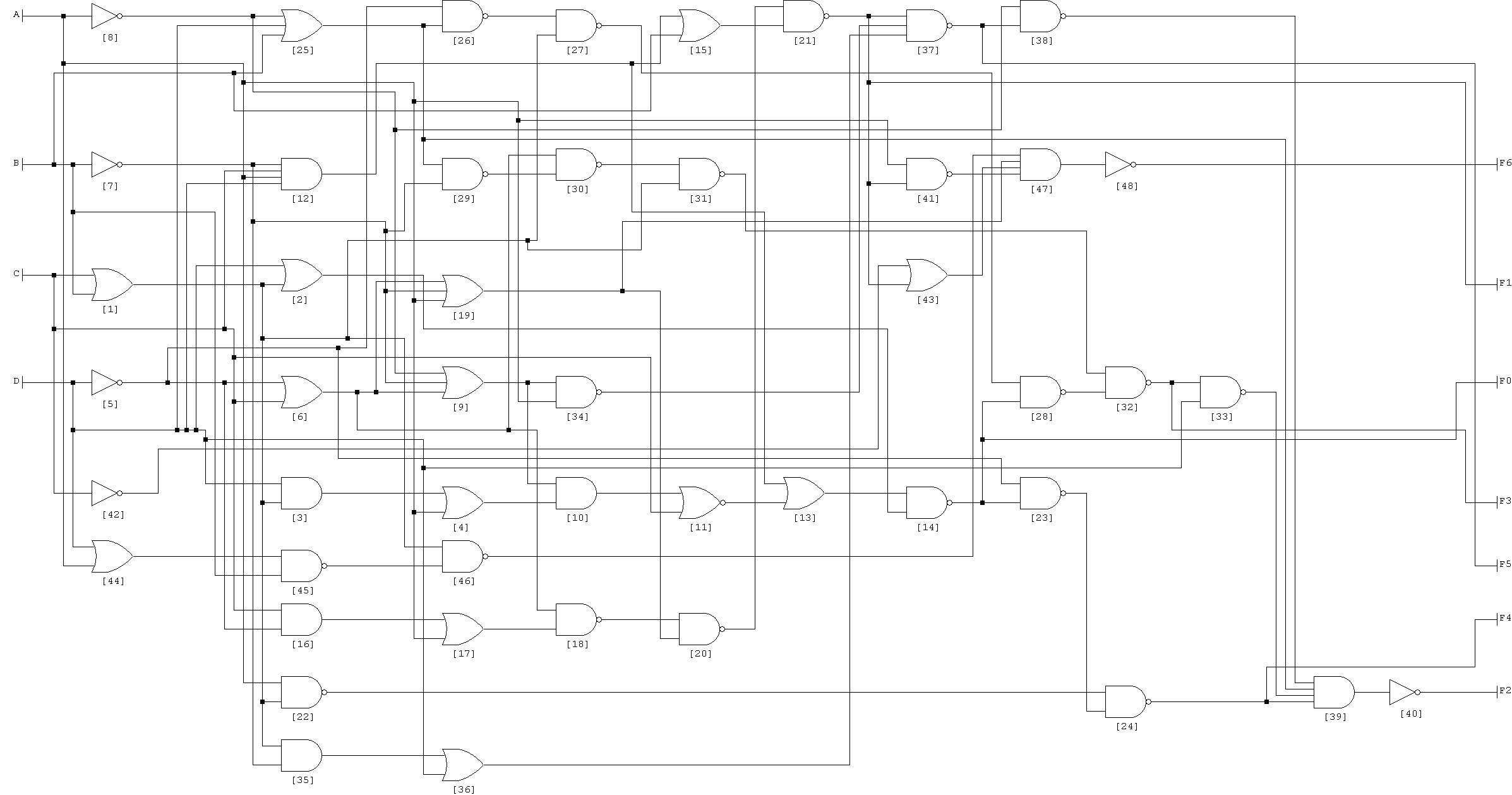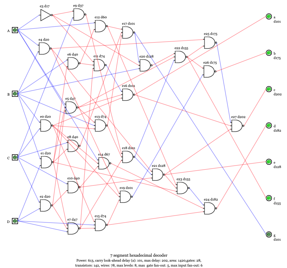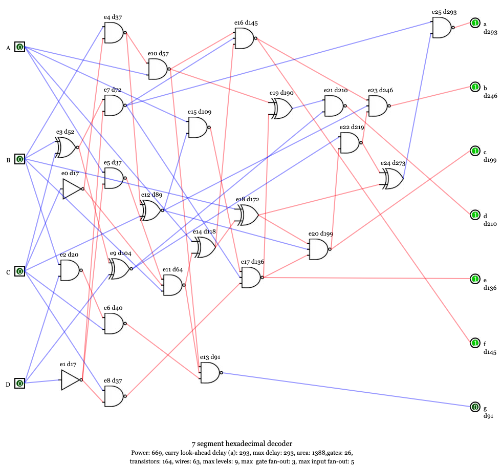 2. 46 gates, 324 transistors, 120 wires, 150 ps maximum delay, max. levels 3, max fan-out: 11: