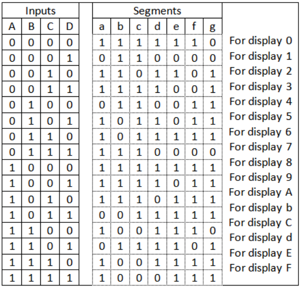 7 segment hexadecimal decoder