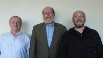 “The technology is amazing,” says Mark Hanson, CEO of the nonprofit Heartland Coalition, which is partnering with Megadata Web. (Photo:  Pepik and Toms with Hanson, center)