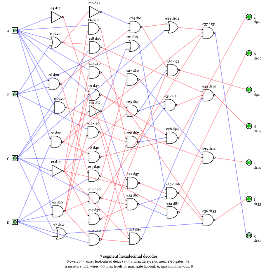 4. Power: 1200, area: 2190, 391 ps maximum delay, max. levels: 12, max fan-out: 8, 48 gates, 216 transistors, 112 wires